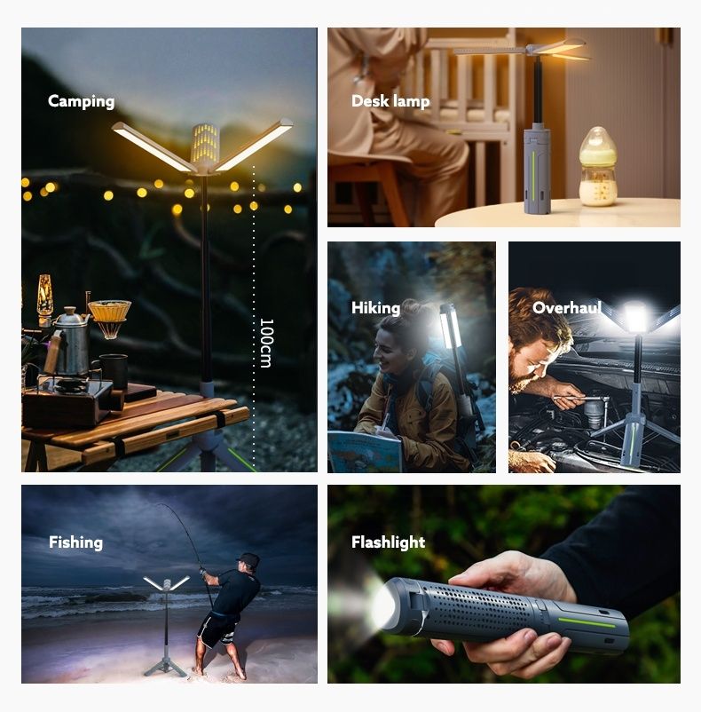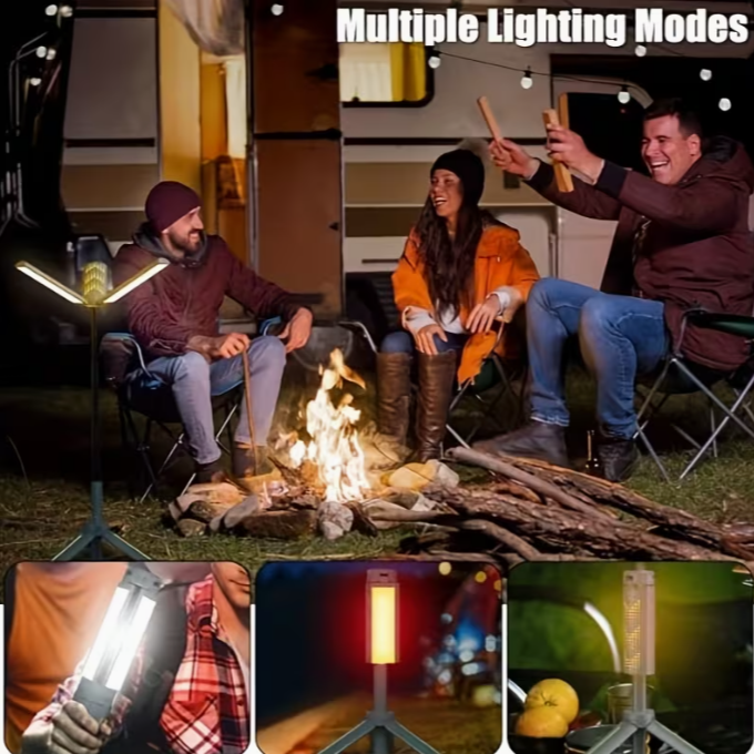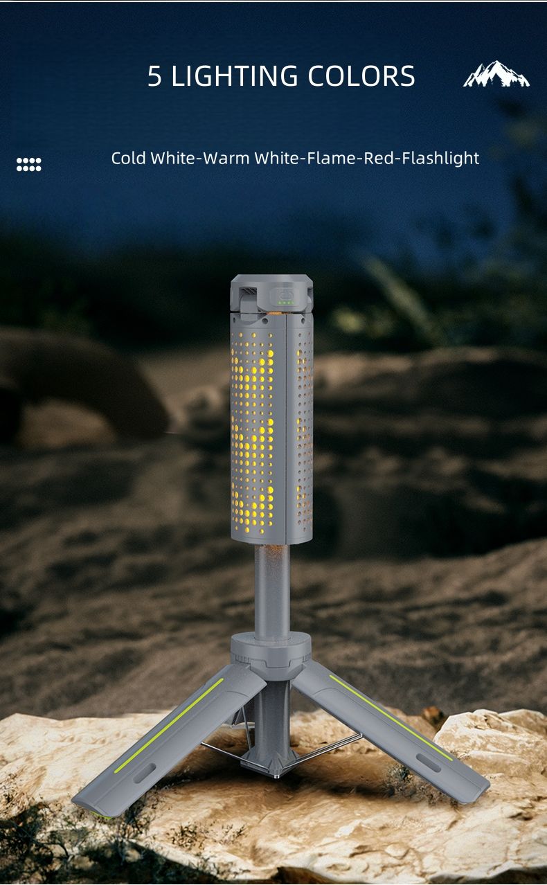 Multi-functional 1m Telescopic Camping Light Campsite Canopy Tent LED Flame Lamp Ambient Emergency Lighting